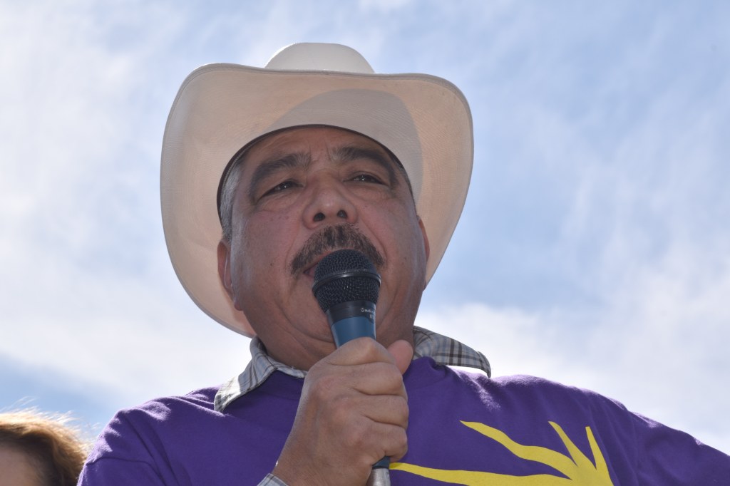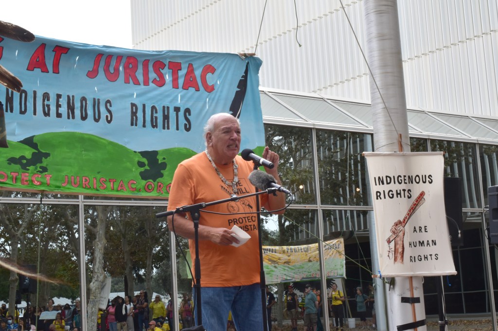 Valentin Lopez, Chair, Amah Mutsun Tribal Band at rally for Juristac at County Government Building in San Jose on Saturday September 10th 2022
