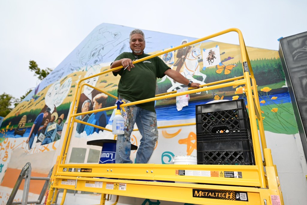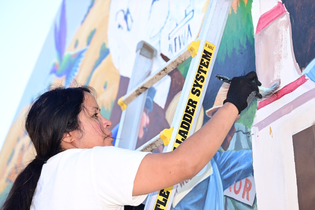 Among the Chicano individuals painted in the mural are: Luis Valdez of Zoot Suit and Teatro Campesino fame, Sofia Mendoza, a San Jose Chicana activist in the 70’s & 80’s and Rosanna Desoto, a San Jose High graduate and movie actress who appeared in La Bamba and Stand & Deliver. Also featured are Tiburcio Vasquez a legendary folk hero, and Cesar Chavez founder of the National Farm Workers Association (NFWA) that was later changed to United Farm Workers (UFW). The mural also recognizes the Muwekma Ohlone Tribe, the people indigenous to this area.